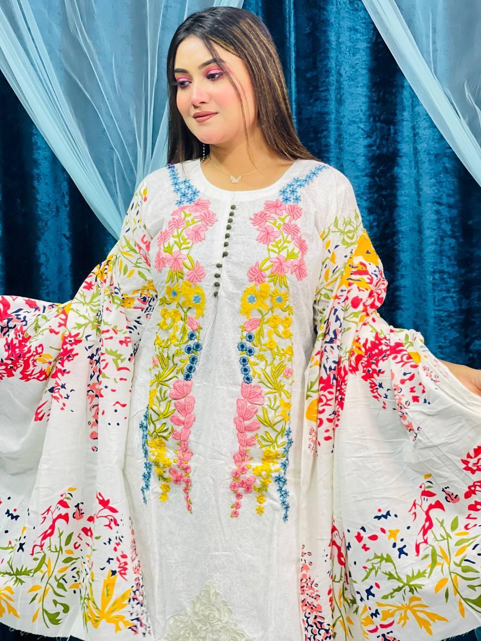 ওড়না কটন এমবুস স্কিন প্রিন্ট